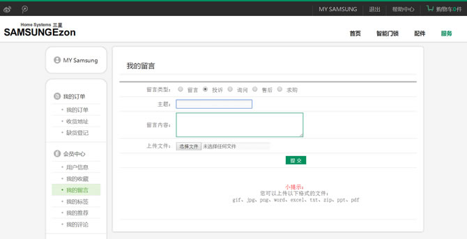2. 登录个人账户后点击-会员中心-我的留言-选择“投诉”填写“主题”及“内容”点击提交即可。